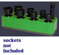 3/8 In Drive Swivel / Impact Socket Organizer w/ Magnetic Base - Dark GreenFeatures: 8-hole design is intended for use w/ English swivel impact sockets: 3/8 thru 3/4 SAE. One hole is designated for extensions. Magnetic base holds tools in holder & holder to work surface. Strong enough to hold upside down. Magnetic material is non-transferable. Magnetic material will not magnetize tools or damage on-board automotive computers & other related circuitry. Fuel/oil resistant non-stick high impact plastic. Fits most tool boxes & drawers. Easily tranferable from tool drawer to work area.