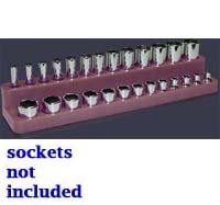 1/4 In Drive Shallow / Deep Socket Organizer w/Magnetic Base - PurpleFeatures: Bi-level organizer allows you to store 1/4" shallow & deep drive sockets into one space saving unit. Accommodates 1/4 thru 9/16 SAE and/or 4 thru 14 mm. Magnetic base holds tools in holder & holder to work surface. Strong enough to hold upside down. Magnetic material is non-transferable. Magnetic material will not magnetize tools or damage on-board automotive computers & other related circuitry. Fuel/oil resistant non-stick high impact plastic. Fits most tool boxes & drawers. Easily tranferable from tool drawer to work area.