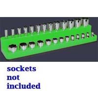 1/4 In Drive Shallow / Deep Socket Organizer w/ Magnetic Base - Neon GreenFeatures: Bi-level organizer allows you to store 1/4" shallow & deep drive sockets into one space saving unit. Accommodates 1/4 thru 9/16 SAE and/or 4 thru 14 mm. Magnetic base holds tools in holder & holder to work surface. Strong enough to hold upside down. Magnetic material is non-transferable. Magnetic material will not magnetize tools or damage on-board automotive computers & other related circuitry. Fuel/oil resistant non-stick high impact plastic. Fits most tool boxes & drawers. Easily tranferable from tool drawer to work area.