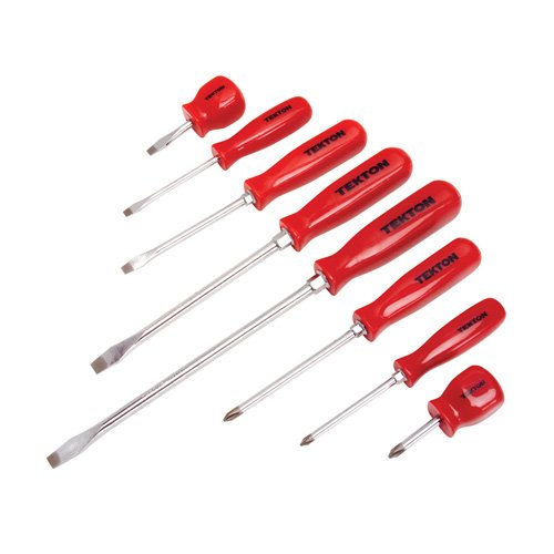 MIT 8-PC. MECHANIC'S SCREWDRIVER SET features: * Hardened and Tempered Chrome Vanadium Steel Shafts * Durable Chrome Plated Finish * Precision-Machined, Vapor Blasted and Magnetized Tips * Square Mechanics-Style Handles * High-Visibility Orange Handles Make Screwdrivers Easy to Locate * Hex Bolster for Wrench-Assisted Torque (on Most Sizes) * 5-pc. Flat: 1/4" x 1-1/2", 3/16" x 3", 1/4" x 4", 5/16" x 6", 3/8" x 8" * 3-pc. Phillips: #2 x 1-1/2", #1 x 3", #2 x 4"